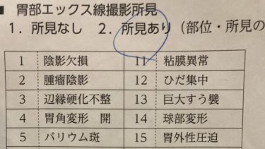 先日受けたがん検診の結果を取りに行った。結果の書かれた紙をペラペラとめくっていく。 ハイ異常なし、異常なし、異常なし、異常なし~、異常な、え!所見あり??? ひとつだけ所見ありがあるではないか。何の検査か見てみると、アレ。バリウム検査をしたアレだ。つまりは胃がんの検査。そしてそこ […]
