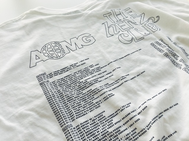 AOMGが2015年からコロナ前までにやった全てのライブがプリントされているという胸アツ仕様。